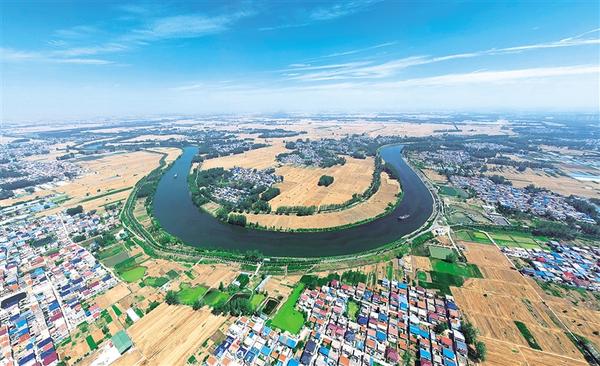 6月6日上午,在川匯區(qū)官坡村西側(cè),兩艘貨船沿沙河西行。沙河在這里繞了個(gè)彎,藍(lán)天下,碧水、貨船、村莊、農(nóng)田宛如一幅油畫(huà),格外美麗,展現(xiàn)了中原港城周口的生態(tài)之美。