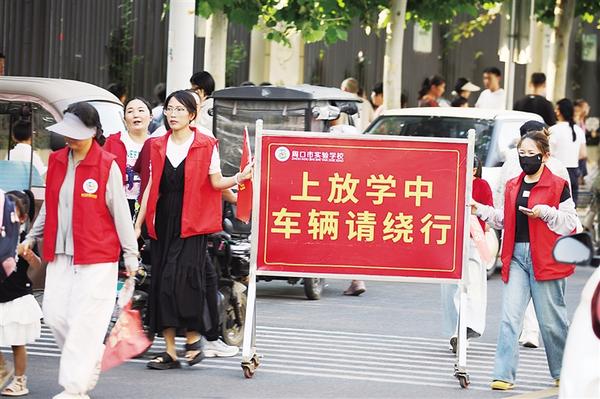 我市中小學(xué)校組織家長(zhǎng)志愿者成立“護(hù)學(xué)崗”,每日上下學(xué)高峰時(shí)段協(xié)同交警、教師維持秩序。