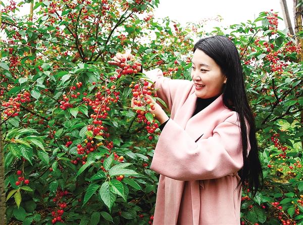 丁志情直播助農賣櫻桃。