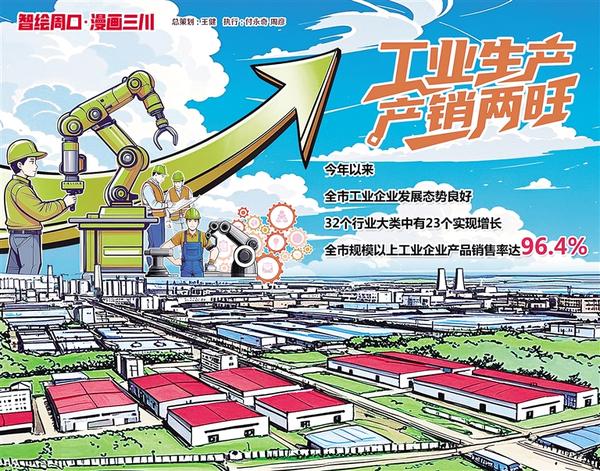 今年以來(lái),全市工業(yè)企業(yè)發(fā)展態(tài)勢(shì)良好,32個(gè)行業(yè)大類中有23個(gè)實(shí)現(xiàn)增長(zhǎng),增長(zhǎng)面達(dá)71.9%。其中,精制食用植物油產(chǎn)量同比增長(zhǎng)80.2%,飲料產(chǎn)量同比增長(zhǎng)75.2%,塑料制品產(chǎn)量同比增長(zhǎng)39.9%,紙制品產(chǎn)量同比增長(zhǎng)37.6%,服裝產(chǎn)量同比增長(zhǎng)37.5%,中空玻璃產(chǎn)量同比增長(zhǎng)28.3%。全市規(guī)模以上工業(yè)企業(yè)產(chǎn)品銷售率達(dá)96.4%,呈現(xiàn)出量增質(zhì)優(yōu)的良好發(fā)展態(tài)勢(shì)。記者 付永奇 周彥 文/圖