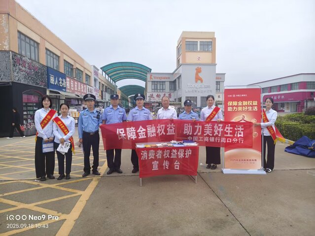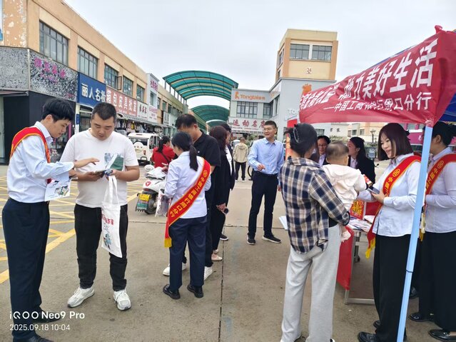 近日,工行周口分行組織青年志愿者赴周口華耀城商品批發(fā)集散地,開展“送金融服務(wù)進商圈”主題宣傳活動。國家金融監(jiān)督管理總局周口監(jiān)管分局相關(guān)負責人及工作人員到場指導并參加宣傳。