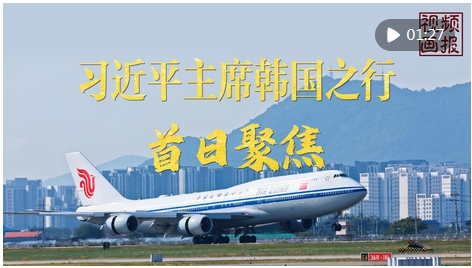 當(dāng)天上午,習(xí)近平主席乘專機(jī)抵達(dá)韓國釜山,韓國外長(zhǎng)趙顯等高級(jí)官員在機(jī)場(chǎng)熱情迎接,禮兵分列紅地毯兩側(cè)致敬,軍樂團(tuán)演奏行進(jìn)樂,機(jī)場(chǎng)鳴放21響禮炮。