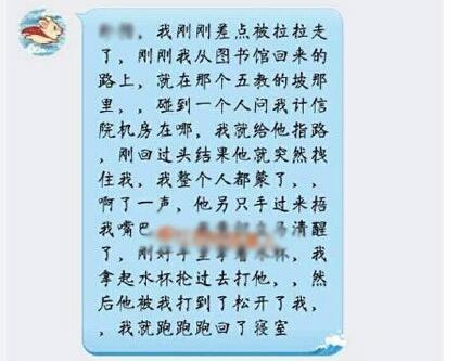 學(xué)生指路被強捂嘴 自爆夜晚回寢室險被劫持