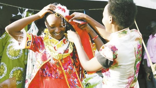 11月10日,學(xué)生在盧旺達卡永扎試穿中國服飾?!?a href="http://www.ynckhj.com/content/2021-11/13/content_959142.html" target="_blank" >[詳細]