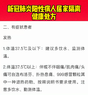 新冠肺炎陽(yáng)性病人居家隔離健康處方