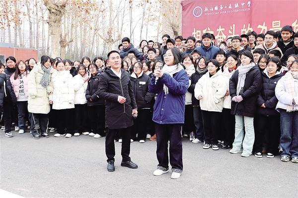 12月20日,黨的二十大代表、全國最美教師劉秀祥(前左)到扶溝縣第二高級中學(xué)開展“弘揚踐行教育家精神”“傳承紅色基因、學(xué)思踐悟中國共產(chǎn)黨人精神譜系”活動,結(jié)合自己的成長經(jīng)歷,引導(dǎo)學(xué)生立報國強(qiáng)國大志向、做挺膺擔(dān)當(dāng)奮斗者。