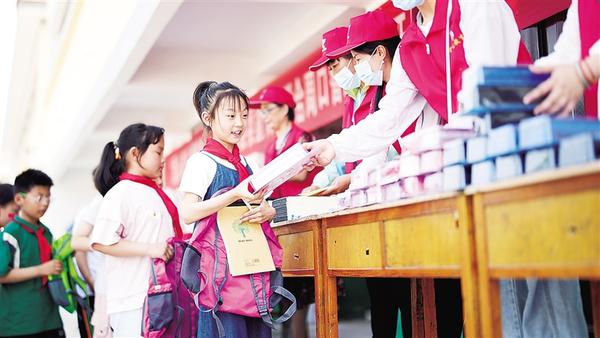 5月22日,扶溝縣江村鎮(zhèn)張龐小學(xué)的學(xué)生領(lǐng)到“六一”禮物?!傲弧眱和?jié)前夕,扶溝縣委宣傳部聯(lián)合我市一家教育公司走進(jìn)扶溝縣江村鎮(zhèn)張龐小學(xué),開展“愛心牽手 情暖童心”迎“六一”愛心捐贈活動,為該校50名留守兒童送去價(jià)值4600元的書包、筆、本、文具盒等物品及節(jié)日的祝福。