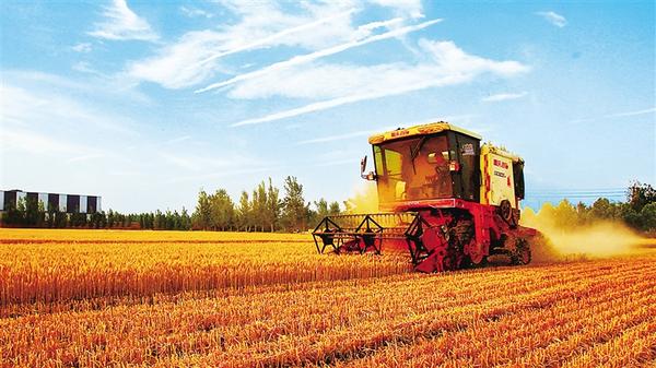 5月22日,農(nóng)機(jī)手駕駛收割機(jī)在扶溝縣大李莊鄉(xiāng)馮老行政村的一塊麥田里收割小麥。近日,扶溝104萬畝小麥相繼進(jìn)入成熟收割期。