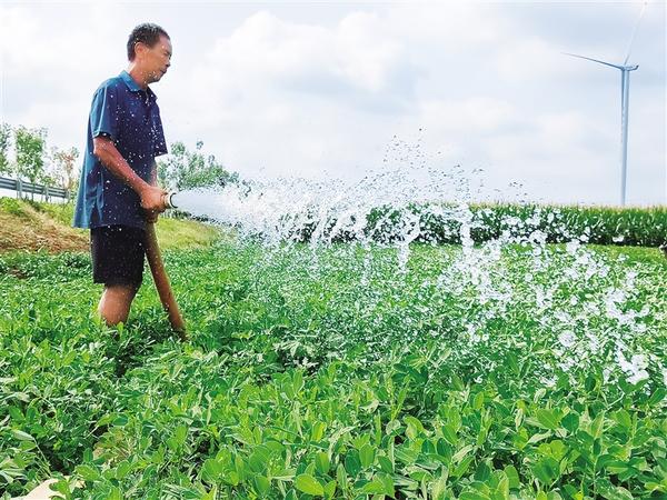 7月24日中午,商水縣鄧城鎮(zhèn)營子村種糧大戶張文才正在玉米地里澆水??粗従徚鬟M田間,玉米葉漸漸舒展,他露出欣慰的笑容。他告訴記者:“這是第六遍澆水,今年玉米豐收有保障了!”