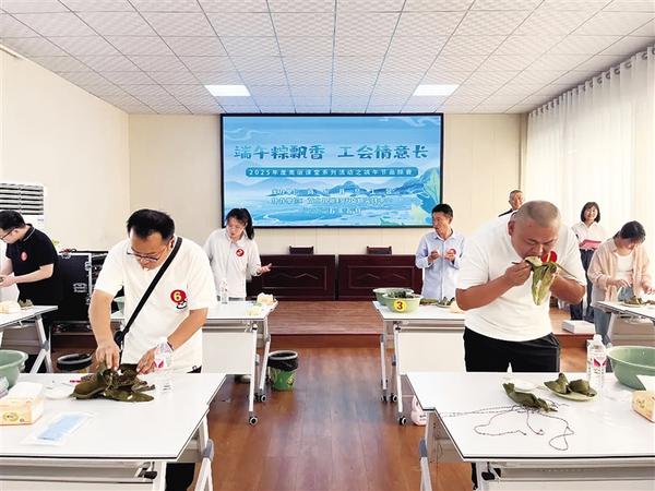 為豐富職工精神文化生活,營造文明和諧、健康向上的氛圍,端午節(jié)前夕,商水縣總工會、縣新時代文明實(shí)踐服務(wù)中心聯(lián)合舉辦“同享端午、共品粽香”主題活動。圖為選手進(jìn)行吃粽子比賽。