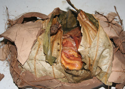 黃家泥巴雞傳說源于元末明初,是一宮廷美食,歷史悠久,風味獨特,堪稱陳州名吃一絕。其做法是,將家養(yǎng)柴雞宰殺洗凈后,配以多種中草藥調(diào)味腌制,采以淮陽環(huán)城湖的黃泥、荷葉包裹,文火燒烤,純手工操作,非油炸食品,清香味濃,口味純正,藥助雞威,雞入藥膳,鮮而不膩,回味悠長,常食有保健長壽之功效。