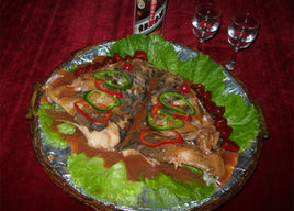 沈丘留福的特產(chǎn)水晶肘子其肘子:皮厚、筋多、膠質重、瘦肉多,帶皮烹制,肥而不膩。該特產(chǎn)數(shù)年前就被沈丘縣志記載,聞名當?shù)財?shù)百里。沈丘留福水晶肘子肉瓷實、皮薄肉嫩,營養(yǎng)也特別豐富。輔料的選用也非常精細,產(chǎn)地固定。制作工藝是非常復雜的,買來的肘子要經(jīng)過水泡、去毛、剔骨、焯胚、碼鍋、醬制、出鍋、澆汁等數(shù)道工序,歷時6個多小時。……[詳細]
