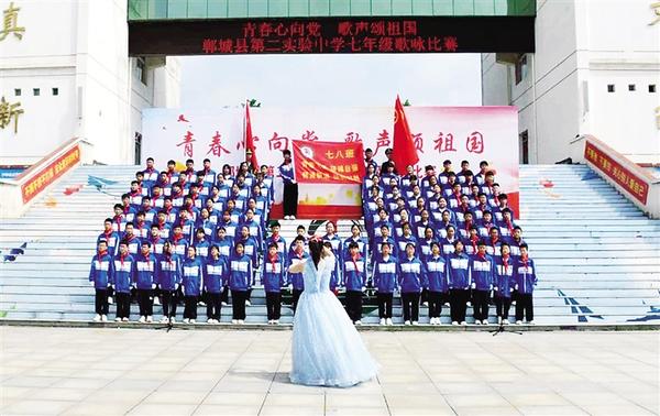 為厚植學(xué)生家國情懷,活躍校園氛圍,彰顯學(xué)生昂揚(yáng)奮發(fā)、健康向上的青春風(fēng)采,5月9日上午,鄲城縣第二實驗中學(xué)隆重舉行以“青春心向黨 歌聲頌祖國”為主題的歌詠比賽。