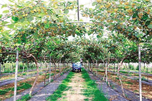 “每枝留果4—5個,間距15厘米,弱枝果、畸形果必須摘除!科學(xué)疏果能讓養(yǎng)分集中,糖度提升2度以上,精品果率超80%。”盛夏的鄲城縣城郊鄉(xiāng)王樓村,連片獼猴桃架下碩果累累,陽光穿透藤蔓在地面投下斑駁光影,村民羅明同正在按照科技特派員的要求疏果、定果。