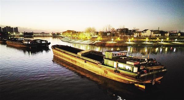 1月15日晚上,在中心城區(qū)三川交匯處,幾艘貨船停泊在沙潁河上。夜色、波光、船影和附近的大渡口、菩提門(mén)、周口大閘構(gòu)成美侖美奐的風(fēng)景。