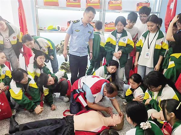 5月12日,沈丘縣風華學校的學生觀看心肺復蘇術操作演示。當日是第17個全國防災減災日,主題是“人人講安全、個個會應急——排查身邊災害隱患”,5月12日至5月18日為防災減災宣傳周。