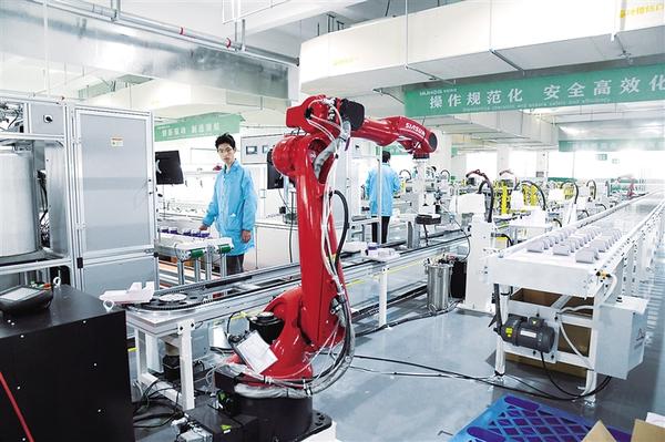 位于川匯區(qū)的河南宇虹物聯(lián)網(wǎng)科技有限公司年產100萬塊熱力智能傳感器生產項目,總投資1.5億元,主要生產智能超聲波熱量表。目前,該項目已投產運營,滿產后預計年產值2.6億元,實現(xiàn)年利稅3600萬元。圖為工人在生產線上操作機器人加工產品。