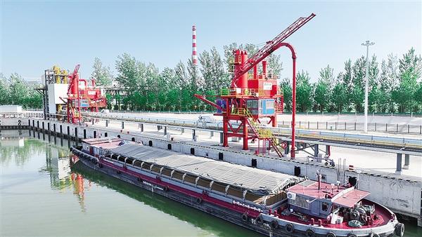 今年一季度,我市港口生產(chǎn)實(shí)現(xiàn)“開門紅”,周口港貨物吞吐量達(dá)到1427萬噸,同比增長76.33%,集裝箱吞吐量完成4.96萬標(biāo)箱,同比增長56%。圖為4月23日,一艘裝滿糧食的貨船正??吭诖a頭等待卸糧。