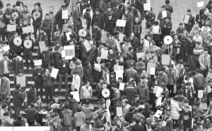 浙江義烏迎節(jié)后招工高峰 3月9日,在義烏市人力資源市場,手舉招聘信息的人們在等待應(yīng)聘者。