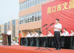 2012年,乘著周口市委“科教興周戰(zhàn)略”的東風(fēng),由周口市委、市政府、市東新區(qū)管委會傾力打造,投資3億元創(chuàng)辦的周口市文昌中學(xué)應(yīng)運而生。市委書記徐光親筆為該校題下“礪學(xué)弘文、昌達(dá)天下”的校訓(xùn)。