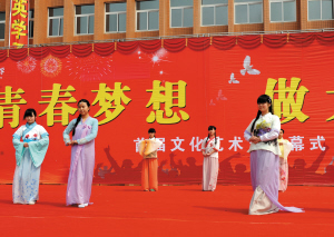 該校把特色教育作為發(fā)展的名片,推出“一班一品一特色”活動。學(xué)校建立以班級為單位的社團(tuán)組織,并細(xì)分為體育類、舞蹈類、樂器類、美術(shù)類四大類別,共70個社團(tuán)。比如:美工社團(tuán)制作漢服進(jìn)行表演,每一次都讓在場的觀眾潸然淚下,為自己是一個漢唐中華子孫而驕傲,為著漢唐服裝而自豪。學(xué)校出版了《求真大課堂》《走在成長的路上》《花季無悔》《中學(xué)生科技創(chuàng)作》《班主任德育思想錄》《國學(xué)之蘊》《家和萬事興》《共創(chuàng)一個夢 和韻文昌之家校共建》《“文昌杯”文明我先行 共筑一個夢》主題征文作文選等校本教材。為豐富校園文化生活,學(xué)校邀請中國政法大學(xué)的霍登科,歷史文化學(xué)者王少清,青少年心理教育專家張海選、萬禮彬,周口市中心醫(yī)院婦產(chǎn)科主任楊莉,河南國學(xué)院的施柳貞、王福琪、楊茹梅以及國內(nèi)外優(yōu)秀大學(xué)生對學(xué)生進(jìn)行國學(xué)誦讀和教育、演講比賽、法制教育、夢想目標(biāo)教育、青春期心理和生理教育等活動。在該校首屆“做大成教育 展青春夢想”文化藝術(shù)節(jié)活動中,有一項活動叫珍藏十年“心愿瓶”,當(dāng)滿載學(xué)生夢想的心愿瓶準(zhǔn)備珍藏時,晴天出現(xiàn)了彩虹,讓在場的領(lǐng)導(dǎo)、家長、學(xué)生很驚嘆,說文昌中學(xué)的學(xué)生目標(biāo)遠(yuǎn)大,定有大才出現(xiàn)。這些有意義的活動對廣大未成年人的身心健康起到了很好的促進(jìn)作用。