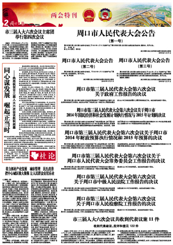 | 周口市第三屆人民代表大會第六次會議關于周口市 2014年財政預算執(zhí)行情況和2015年預算的決議 | |