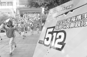 校園地震逃生演練 5月12日,安徽省合肥市蜀山區(qū)第五十中學(xué)(新區(qū))的學(xué)生們在演練地震逃生撤離。當(dāng)日是“5·12”汶川地震紀念日,該校開展逃生演練?;顒又荚谥笇?dǎo)學(xué)生遇到地震時采用有序、正確的處置方法。