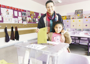 土耳其舉行議會選舉      6月7日,在土耳其首都安卡拉一個投票站,一個小女孩幫媽媽投票。土耳其議會選舉當日開始投票。執(zhí)政的正義與發(fā)展黨、主要反對黨共和人民黨、民族行動黨和親庫爾德的人民民主黨在內的20個政黨參加競選,角逐550個議會席位。新華社發(fā)