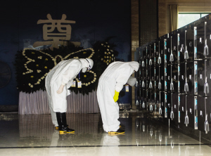 細心為逝者入殮 6月9日,在為遺體化妝前,入殮師在停靈間的冰柜前向逝者鞠躬。當日,在湖北省監(jiān)利縣容城殯儀館,入殮師細心為遇難者入殮,辦理善后事宜。 新華社發(fā)